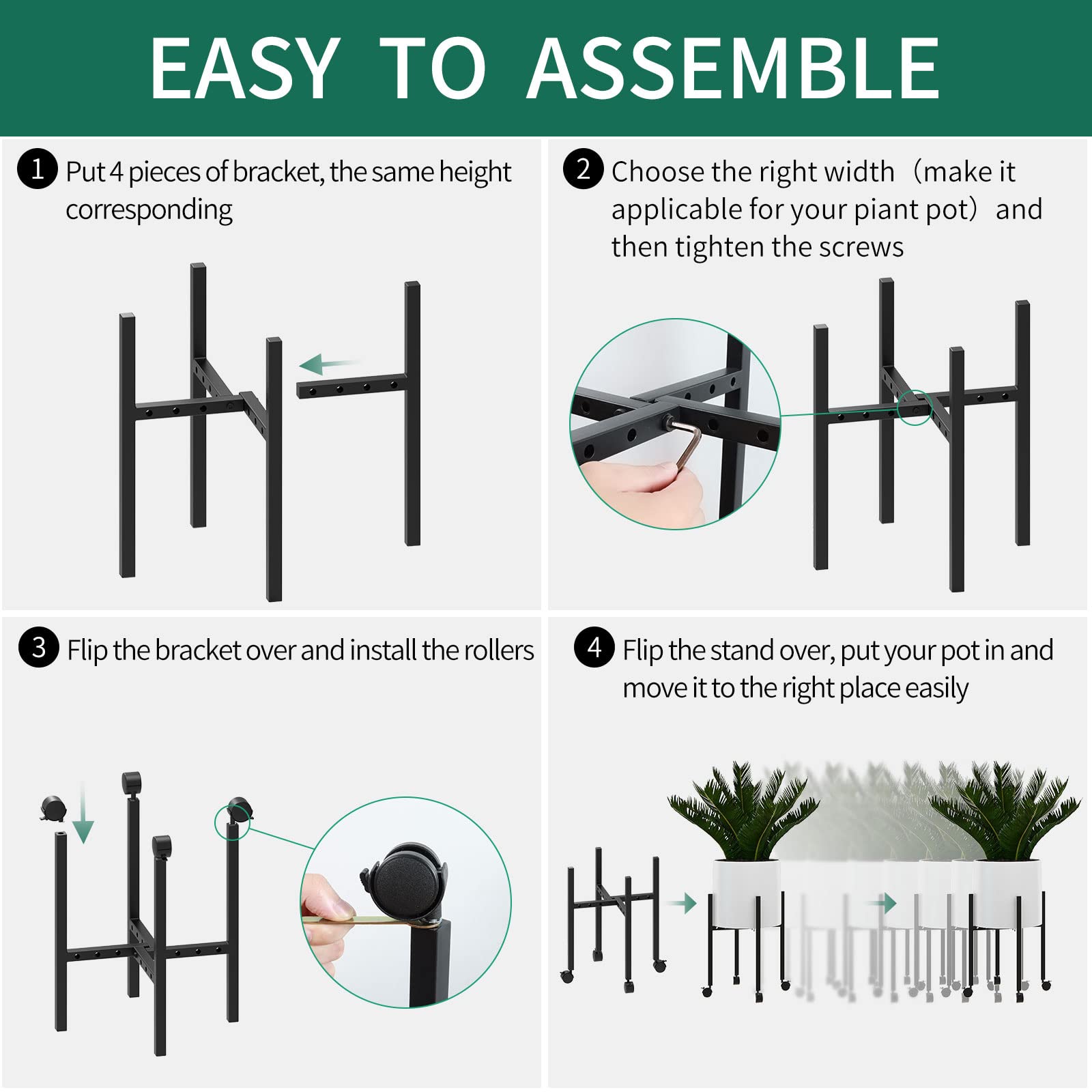 Amazon Com Jznova 12 Heavy Duty Metal Plant Stand With Wheels Square Iron Plant Caddy On Wheels Outdoor Flower Pot Rack On Rollers Indoor Dolly Holder Rolling Tray Coaster Fully Assembled